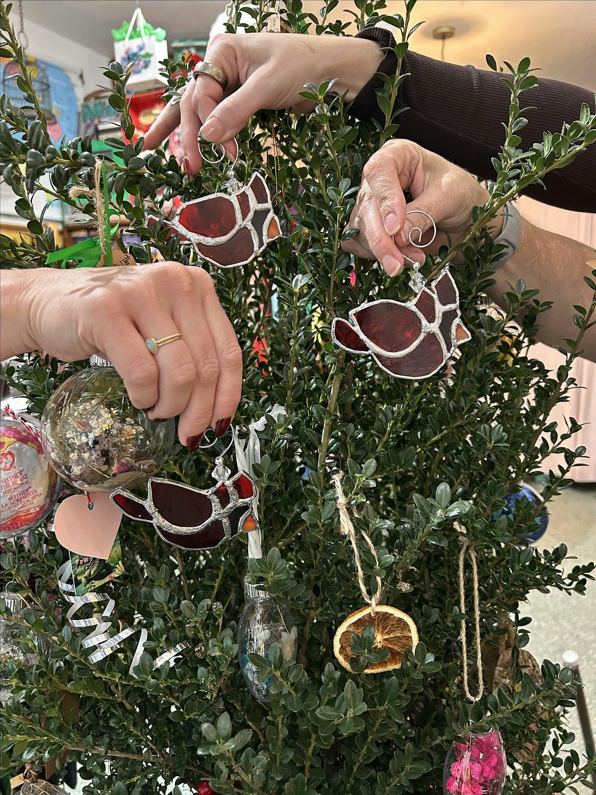 This is a beginner friendly stained glass class. Every thing is pre cute and ground so there's less mess and way less stress! You'll learn to foil, burnish, and solder your very own stained glass cardinal ornament. Keep it for yourself or give it to the mother in your life!