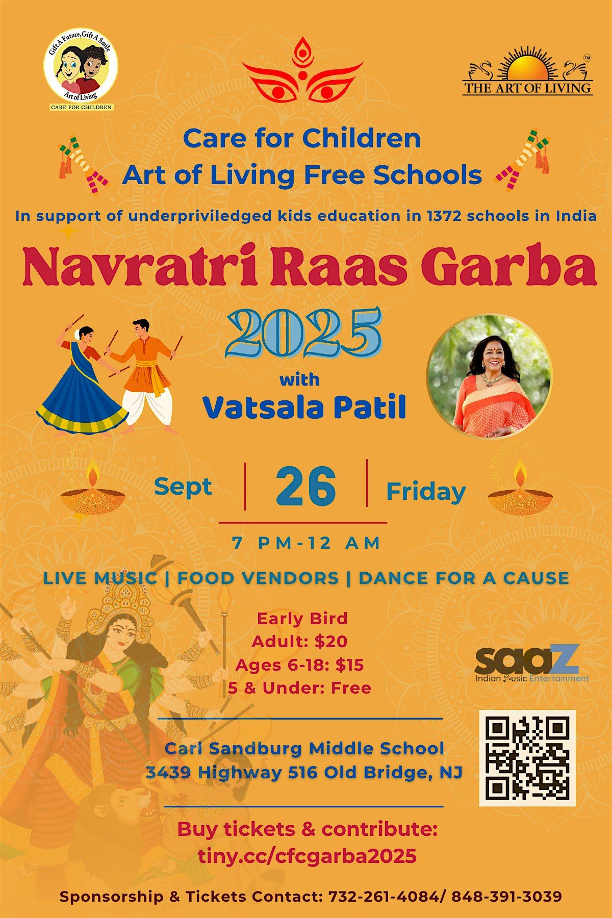 Care for Children & the Art of Living foundation are hosting a fundraising event, Navratri Raas Garba 2025, a cultural festival of ethnic music by renowned singer Vatsala Patil and dance. The proceeds from the event will support educating 67,000 children that are studying in 600 schools throughout India.