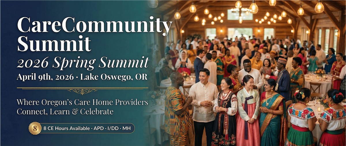 Oregon's adult care home community is one of the most beautifully diverse communities in the country and the 2026 Spring CareCommunity Summit is a celebration of exactly that.Join us on April 9th, 2026 in Lake Oswego for a full day of education, inspiration, and genuine human connection. Care home providers in Oregon come from every corner of the world : from East Africa to Eastern Europe, from Southeast Asia to Latin America, from the Pacific Islands to the Middle East and together, they form the backbone of compassionate care for Oregon's aging adults. This summit is your day. A day to learn, to grow, to connect, and to be seen and celebrated for the extraordinary work you do and the rich cultures you bring to it.