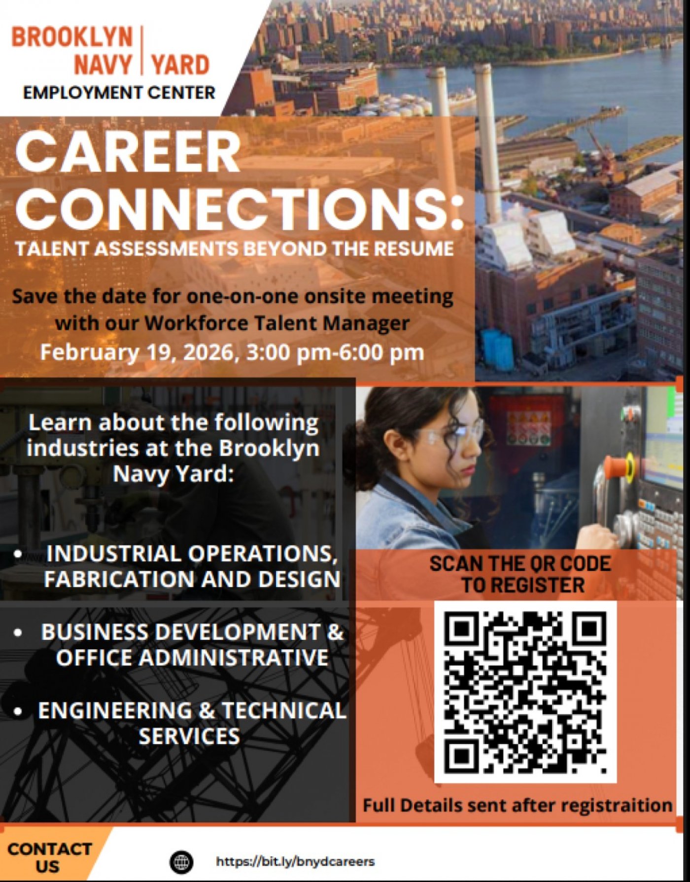 We are pleased to share an opportunity that we believe will be valuable for your students, recent graduates, and alumni. The Brooklyn Navy Yard is hosting a community‑centered job fair designed to help emerging talent demonstrate their abilities beyond what appears on a resume.