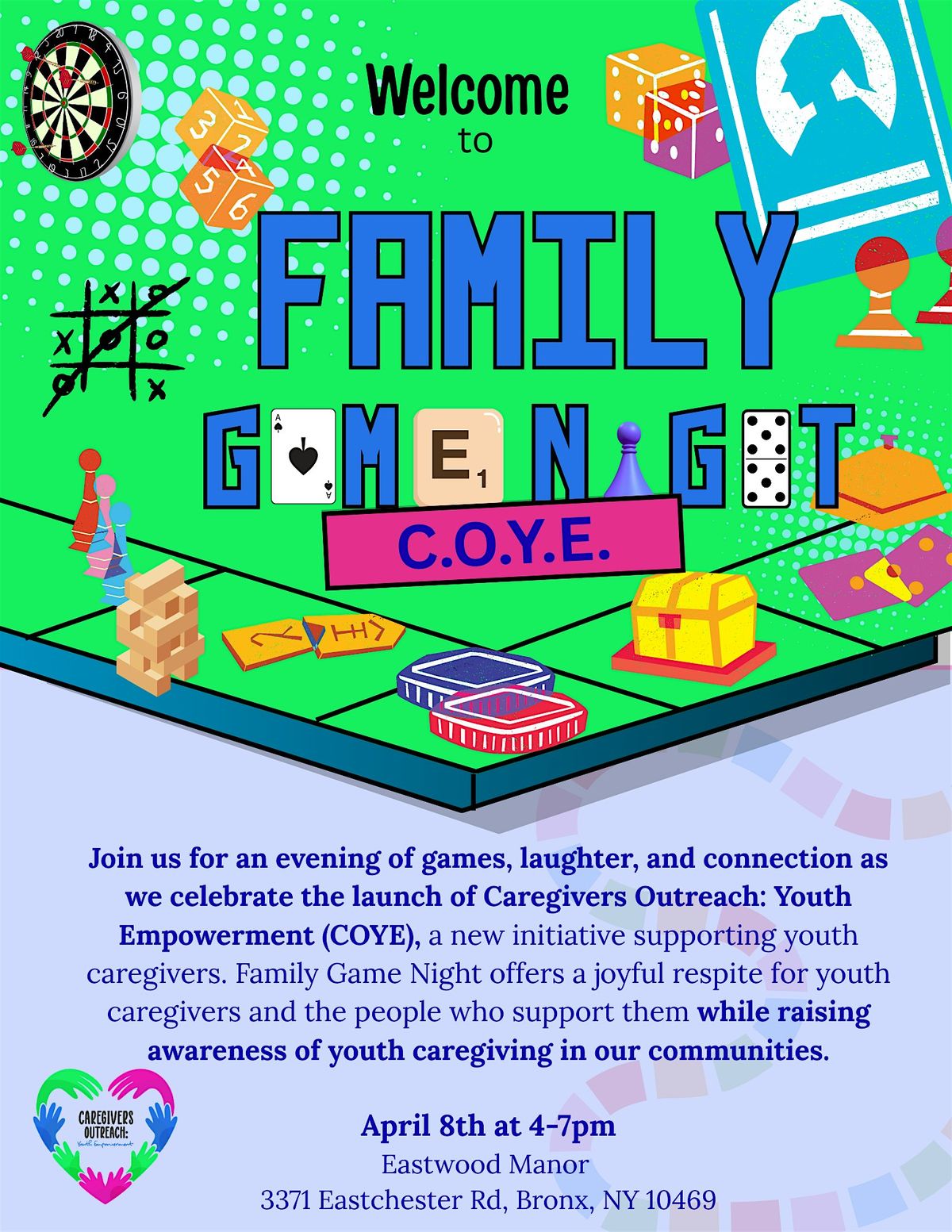 Caregivers Outreach invites families, community members, and supporters to join us for our Annual Family Game Night, which will also serve as the official launch of Caregivers Outreach: Youth Empowerment (COYE).