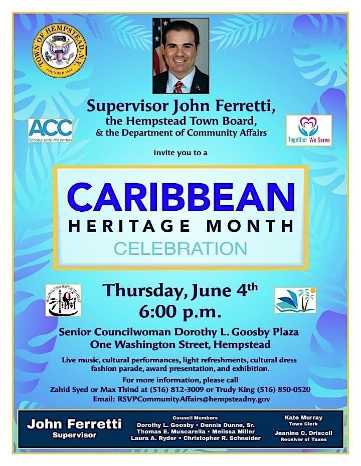 Supervisor John Ferretti, the Hempstead Town Board and the Department of Community Affairs are hosting this event and together we are celebrating with the people of the Caribbean and the Caribbean diaspora and recognising their contribution to the Town of Hempstead.
