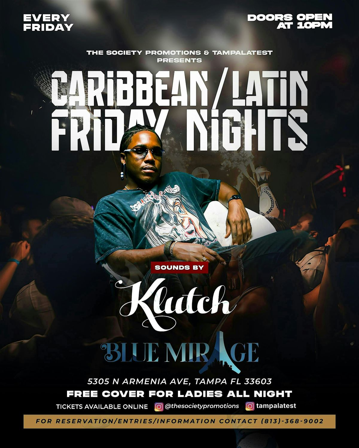 Join The Society Promotions & TampaLatest at our new weekly residency (Caribbean & Latin Fridays at Blue Mirage)