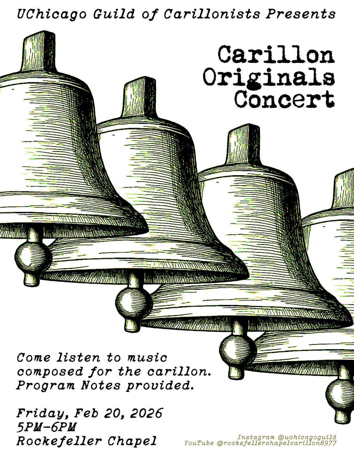 Join us Week 7 Friday, Feb 20, 5PM-6PM, for a concert of music composed for the carillon across 300 years. Program Notes provided!