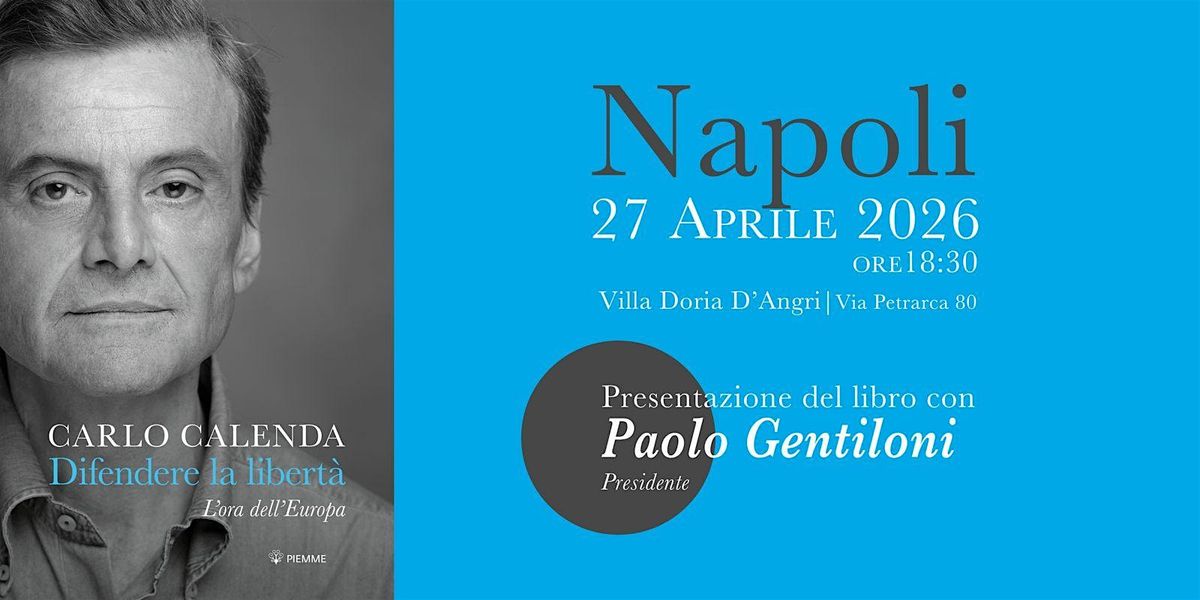 Non perderti questo evento speciale a Villa Doria D'Angri! Carlo Calenda sarà presente per raccontare e discutere il suo nuovo libro insieme al Presidente Paolo Gentiloni. Ti aspettiamo il 27 aprile alle ore 18:30. Sarà un'occasione unica per incontrare Carlo e parlare insieme di Europa. Ti aspettiamo!
