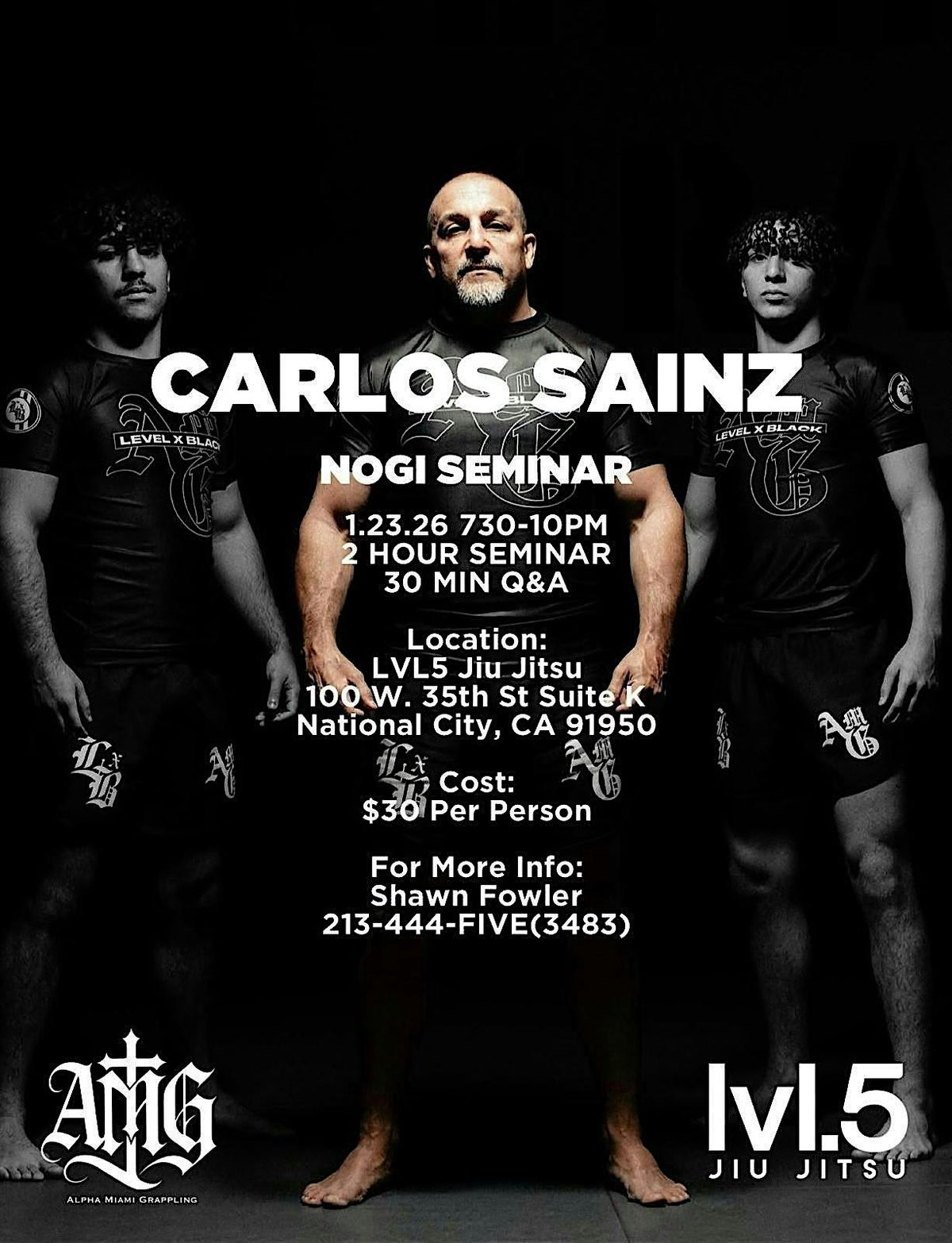 Carlos Sainz — Head Coach and founder of Alpha Miami Grappling (one of the fatsest growing and highly rated schools in the country for kids grappling) will be hosting a NOGI Seminar in San Diego, Ca January 23,2026 from 7-10PM at LVL5 Jiu Jitsu.