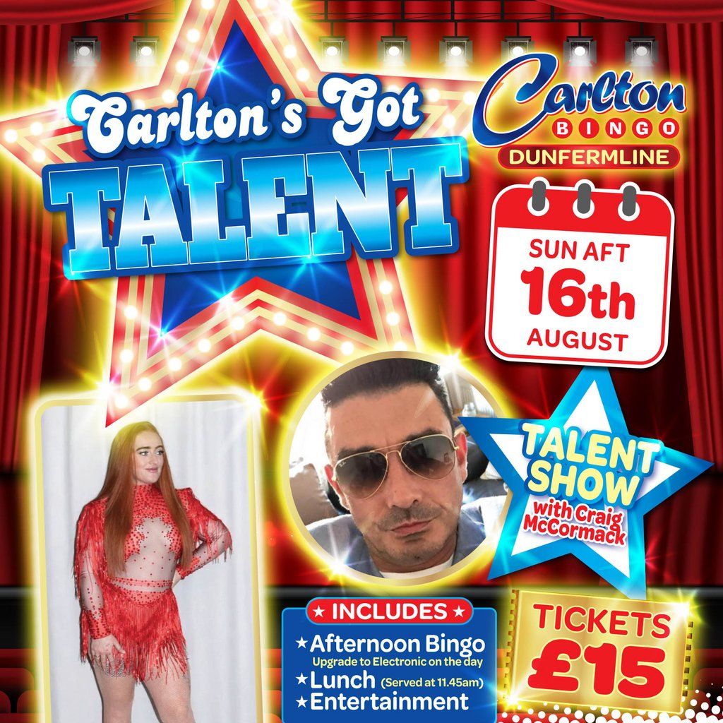 live entertainment from Morgan Red and Talent show with Craig McCormack! who will win Carltons got talent! Lunch, Bingo & Entertainment