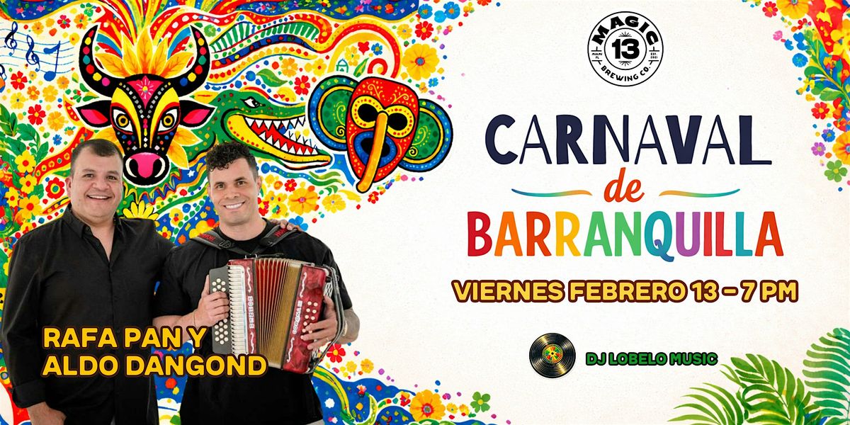 Latinos de Miami, ¡prepárense para vivir la alegría, música y tradición del Carnaval de Barranquilla en Magic 13 Brewing este 13 de febrero! 🎶💃🏽🎭 Disfruta de una noche única con Rafa Pan, Aldo Dangond y DJ Lobelo Music acompañados de una explosión de cumbia, mapalé y rumba barranquillera.