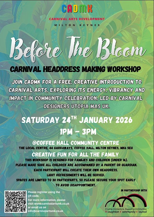 Get ready to unleash your creativity at our Carnival Headdress Making Workshop! Join us in person for a fun-filled session where you'll learn to craft vibrant, eye-catching headdresses perfect for any festive occasion. Whether you're a beginner or a pro, this hands-on workshop lets you dive into the colorful world of carnival fashion. Bring your enthusiasm and walk away with a one-of-a-kind masterpiece you made yourself!