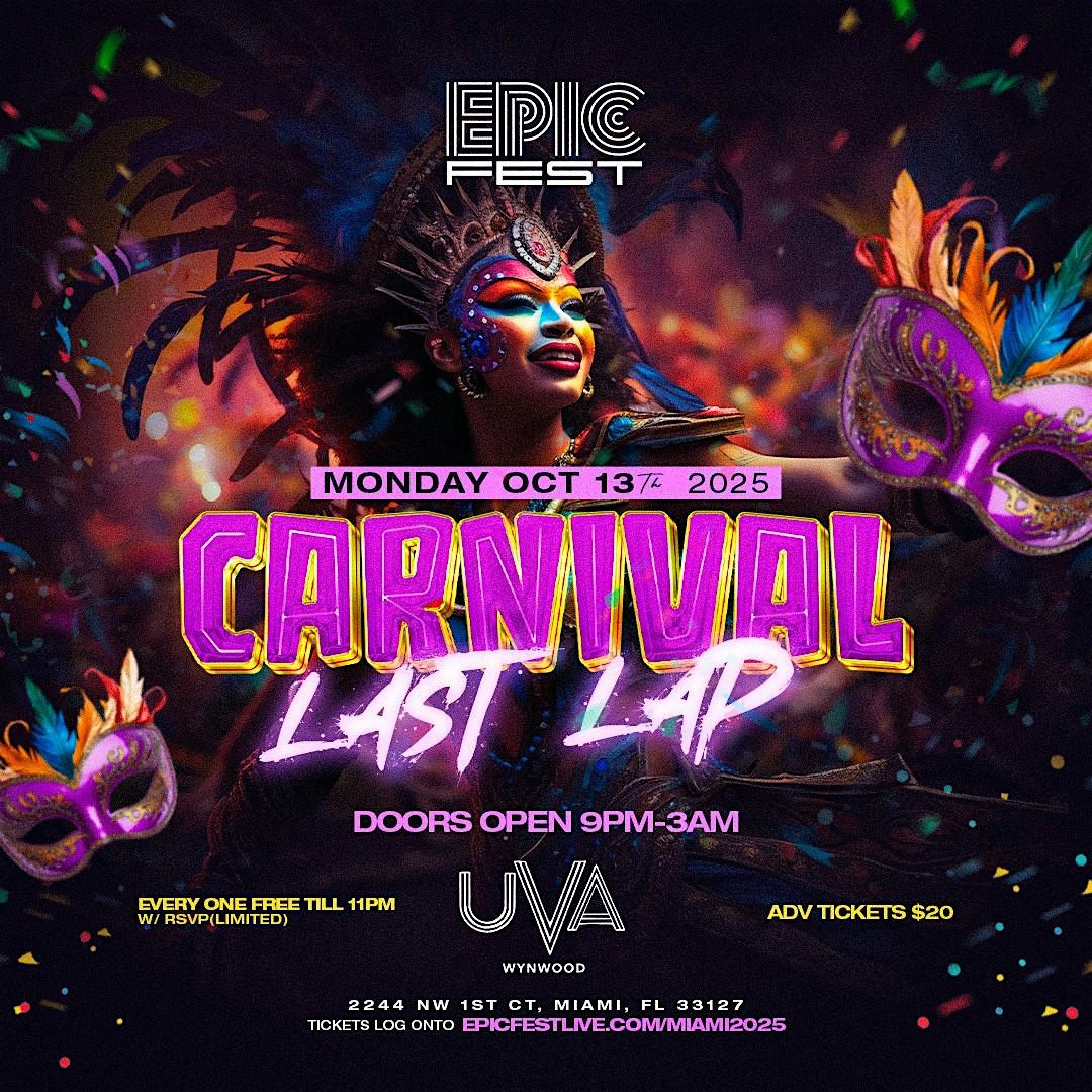 As the sun sets on an unforgettable Carnival weekend, the vibes don’t stop! Join us for CARNIVAL LAST LAP — the official farewell party where we close out Miami Carnival 2025 the right way!