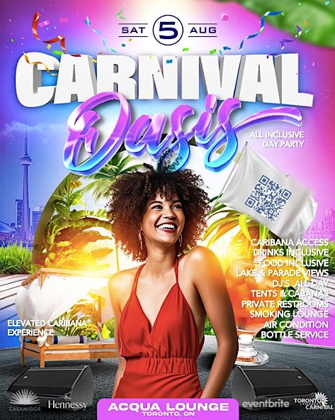 Add to your experience at the outdoor smoking lounge, turn up with VIP treatment with premium bottle service. Carnival Oasis - Caribana 2023 Official Day Party promises an unforgettable elevated Carnival Experience that will rival Miami, Trinidad or Jamaica. Let's transport you on Caribana Saturday, U can stay all day - party all night.