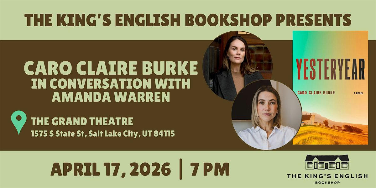 The King's English is thrilled to welcome Caro Claire Burke to Salt Lake City to celebrate the release of her debut novel, Yesteryear. Caro will be in conversation with Bookish SLC founder, Amanda Warren.