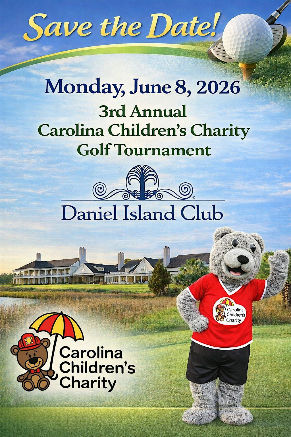 We are excited to announce that Carolina Children’s Charity will hold its third annual Golf Tournament on Monday, June 8, 2026, at Daniel Island Club. The Daniel Island Club is a private club that features 36 holes that weave through a Lowcountry landscape of saltwater marsh, tidal creeks, and waterways. Designed by Tom Fazio, the Beresford Creek Course opened in 2000, followed by the Ralston Creek Course designed by Rees Jones, which opened in 2006.