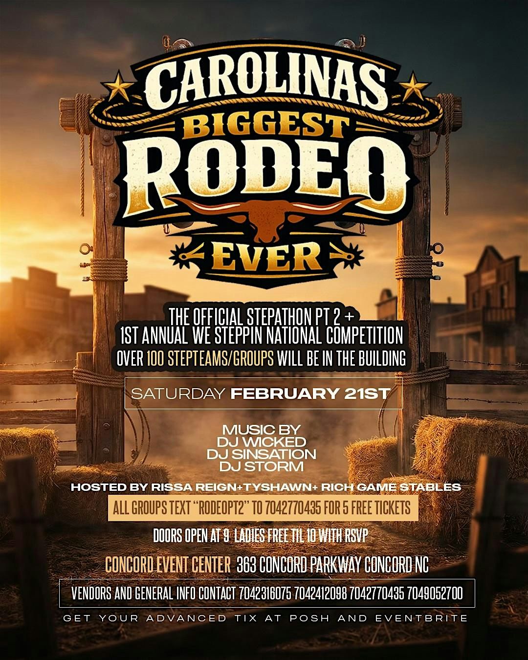 All groups text “RODEOPT2” to 704-277-0435 for 5 FREE tickets