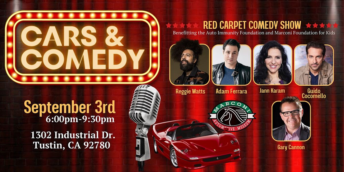 Enjoy a red carpet comedy show surrounded by the $60 million Marconi Automotive Museum collection, in support of the Auto Immunity Foundation and the Marconi Foundation for Kids.