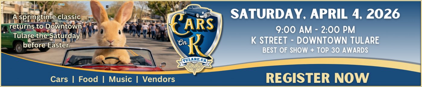 The Tulare Chamber of Commerce is excited to announce the return of Cars on K, Downtown Tulare’s largest and most anticipated community event, taking place Saturday, April 4, 2026, from 9:00 AM to 2:00 PM on K Street.