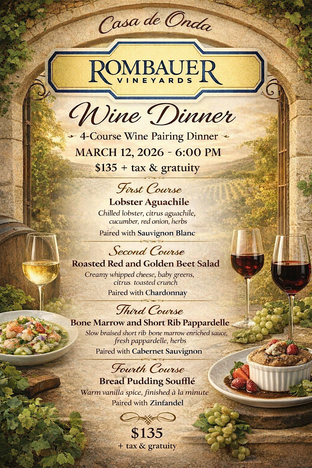 Casa de Onda x Rombauer Vineyards Wine Dinner