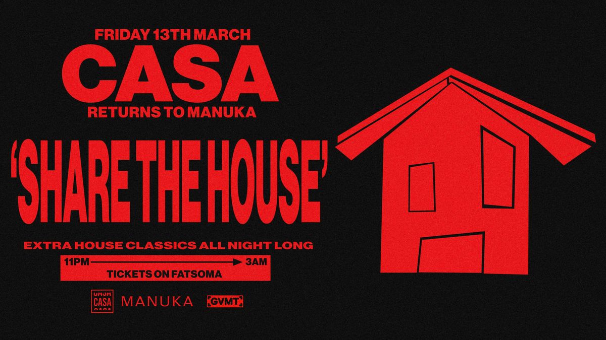 CASA GLASGOW: 'SHARE THE HOUSE' (EXTRA HOUSE CLASSICS) // FRIDAY 13TH MARCH AT MANUKA