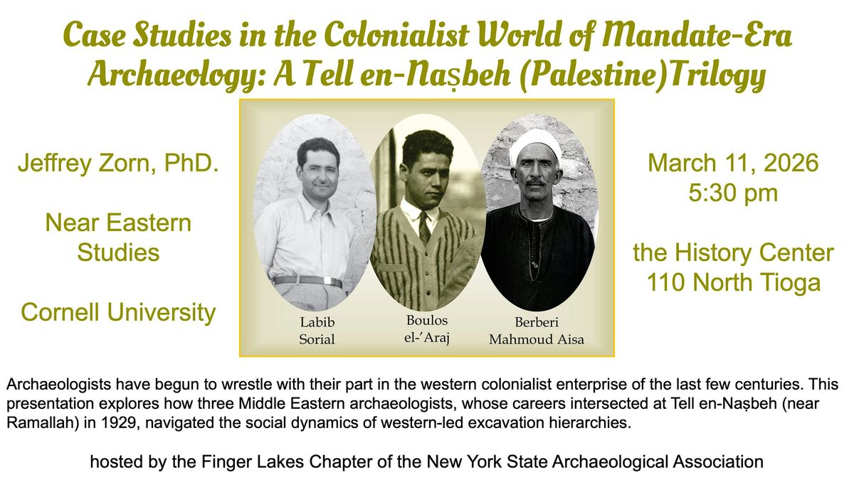 Over the last couple decades, the scholarly world has begun to wrestle with its part in the western colonialist enterprise of the last few centuries. This includes the roles played by archaeologists working in the Middle East in the waning days of the Ottoman empire. This presentation explores the lives and roles of three Middle Eastern men involved in excavations of that era: Labib Sorial, a Copt from Luxor most known as a dig architect; Boulos el-‘Araj, a Palestinian Quaker from Ramallah whose main job was drawing pottery; Berberi Mahmoud Aisa a Muslim from Quft in Egypt who was a reis or foreman who supervised fieldwork. While their careers all intersected at Tell en- Naṣbeh in 1929 (near Ramallah), they spanned considerable geographic and chronologic ranges. How did these local archaeologists navigate the often fraught social dynamics of the western-led excavation hierarchies of which they were a part?