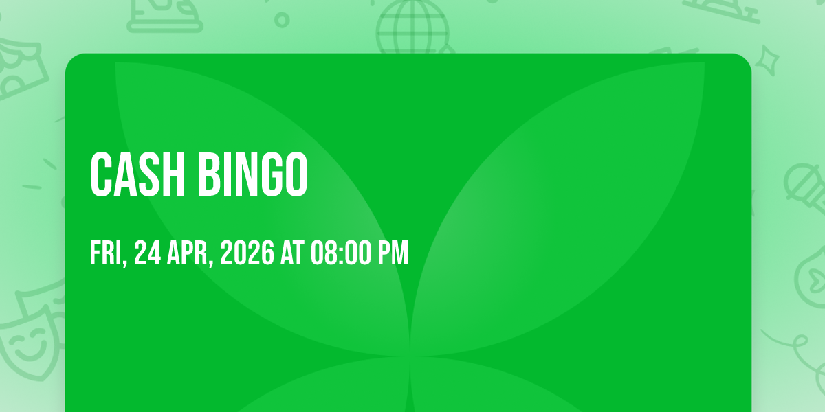 Come & join us for our monthly cash bingo starting from 9pm Lots of prizes to be won multiple games played throughout the evening up to 3 chances to win per game, £5 per game