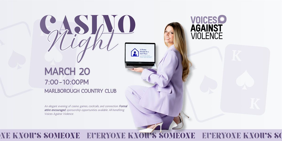 Join us for an unforgettable Casino Night Fundraiser benefiting Voices Against Violence, a local organization dedicated to supporting survivors of domestic violence and sexual assault while advocating for safer, stronger communities.