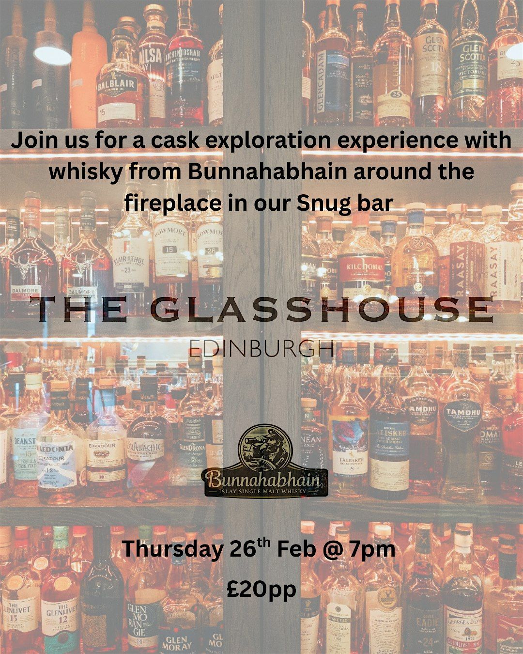 On 26th February at 7:00 pm, the Glasshouse Hotel will welcome guests for an exciting evening with Bunnahabhain Distillery for a special Cask Exploration tasting.