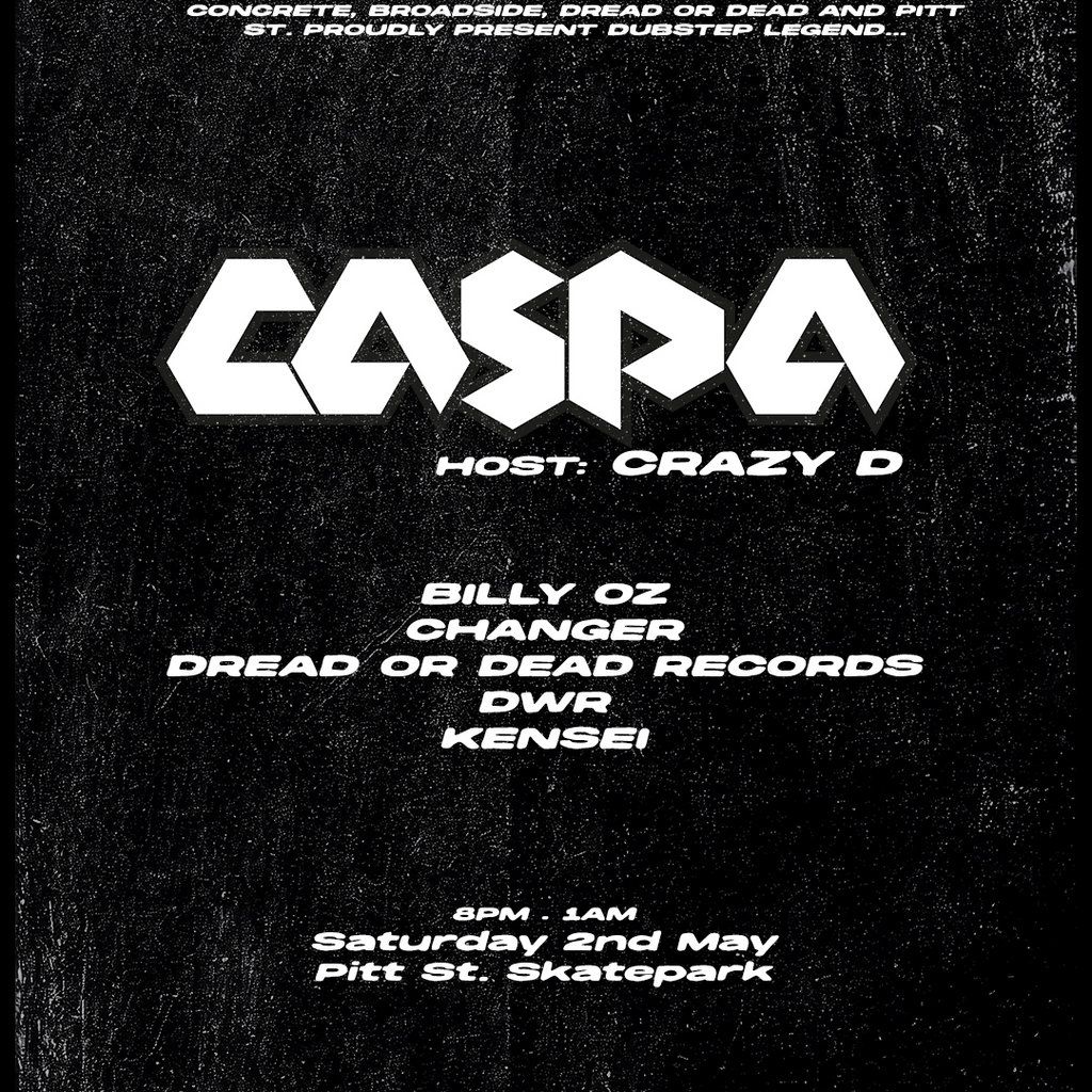 Dubstep Legend CASPA comes to Pitt St. Skatepark, Portsmouth for some heavyweight business.Hosted by Crazy D.