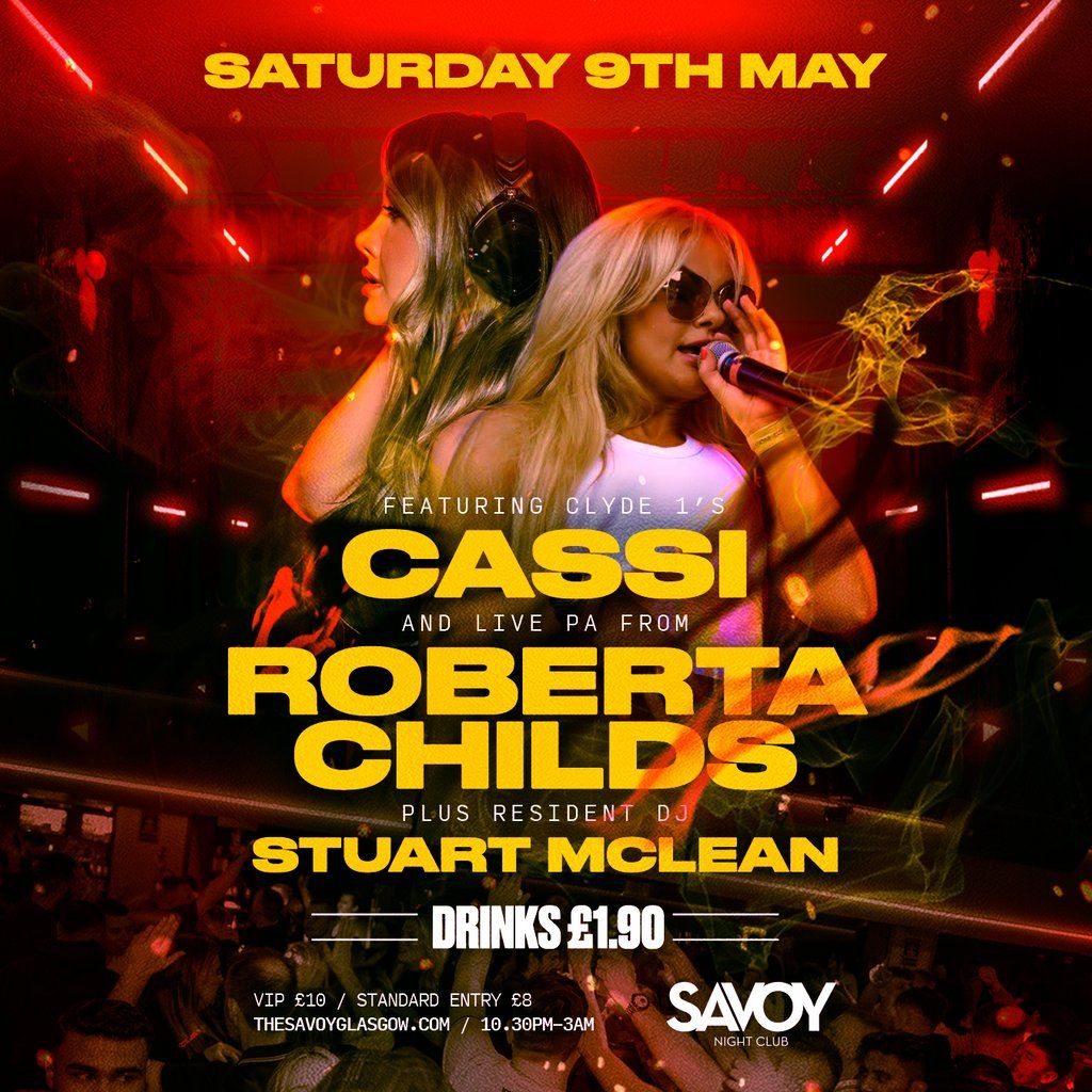 Get ready for a huge night at Savoy Night Club as CASSI takes over with a live PA from ROBERTA CHILDS Plus resident DJ STUART MCLEAN