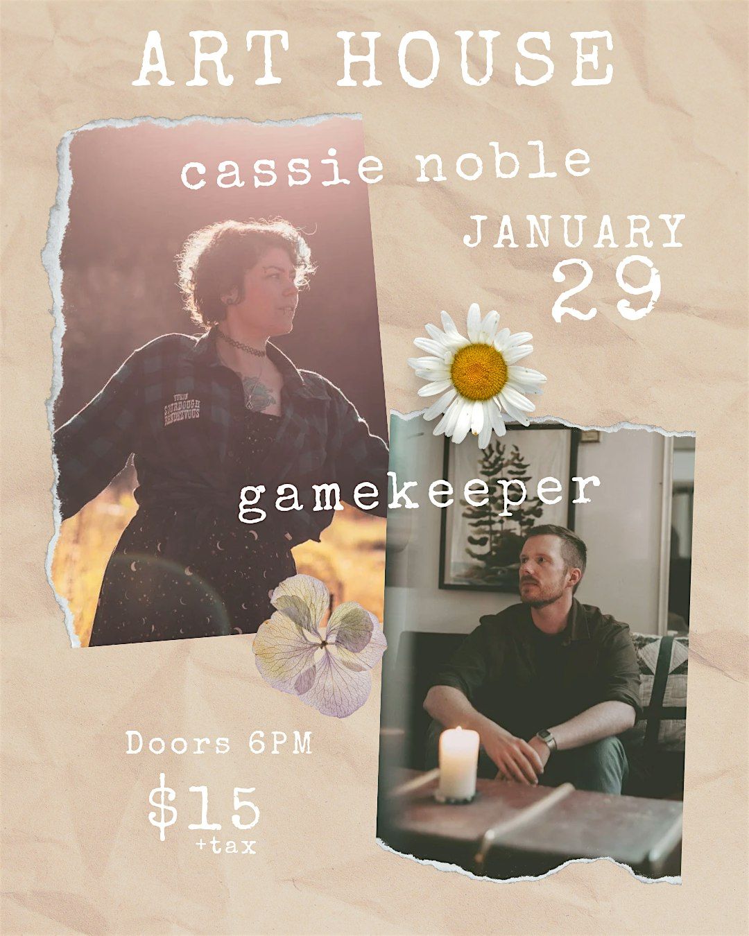 Two honest songwriters from Kawartha Lakes, Ontario. Cassie Noble, a mesmerizing, crackling fire in the forest at the brink of dusk; and Gamekeeper, a warmly lit room, lined with bookshelves full of little treasures. Both of these artists' storytelling and Indie Folk songs will leave you feeling introspective and full of warmth.