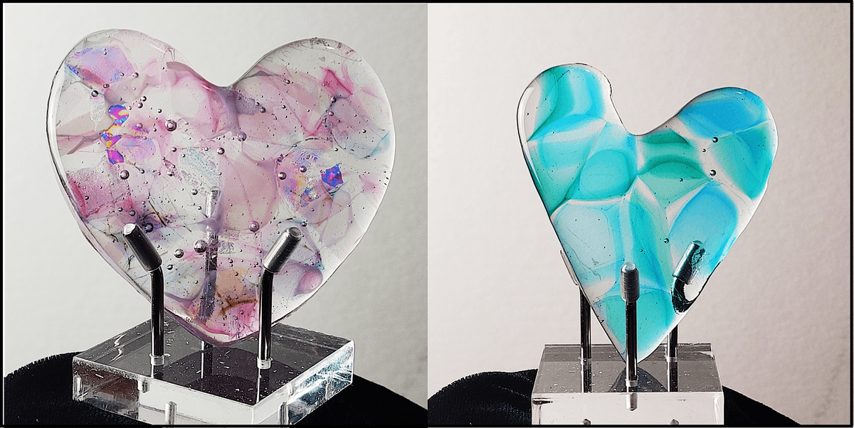 You become the designer and creator by combining clear and colored glass in a mold to create a one of a kind sculpture. In this class, you will use glass fusing methods to create two to three cast shapes (approx. 3-4.5 in diameter) that will brighten your space forever. A variety of glass components, including clear sheet, colored shards, and dichroic elements, will be provided for you to use in creating a layered composition within a metal mold. Using examples and a demonstration provided by your instructor for inspiration, you will plan and assemble your project within the mold. After class, your instructor will heat each assemblage under high temperature to allow the individual glass components to fuse and flow together within the mold and transform into a unique piece of sculptural art glass that is about ¾ in thick. Completed pieces may be picked up the following week.