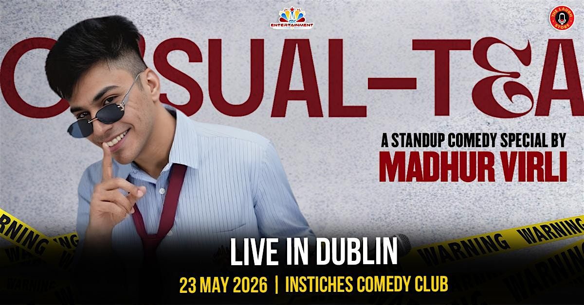 Madhur Virli brings Casual Tea to Dublin! Live stand-up comedy at InStitches Comedy Club on 23 May 2026. Tickets available now with GK Entertainment.