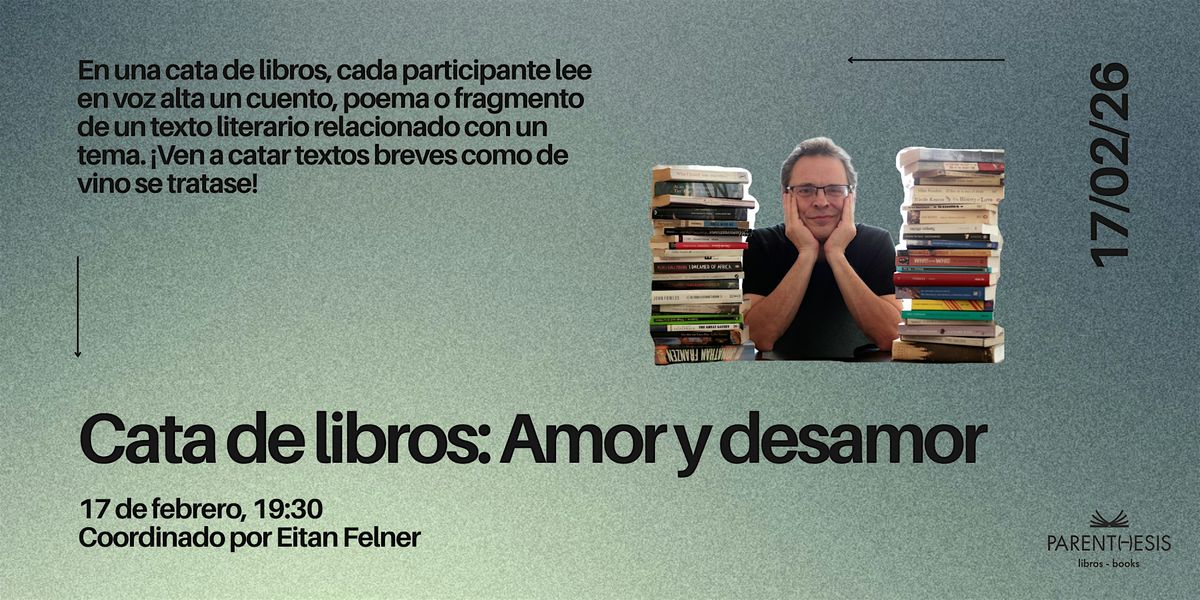 Ven a compartir cuentos, poemas o pasajes de libros sobre amores y desamores. Puedes traer textos que hablen del enamoramiento o el desengaño, de encuentros románticos o despedidas dolorosas, del deseo, la reconciliación o la melancolía que deja un amor.