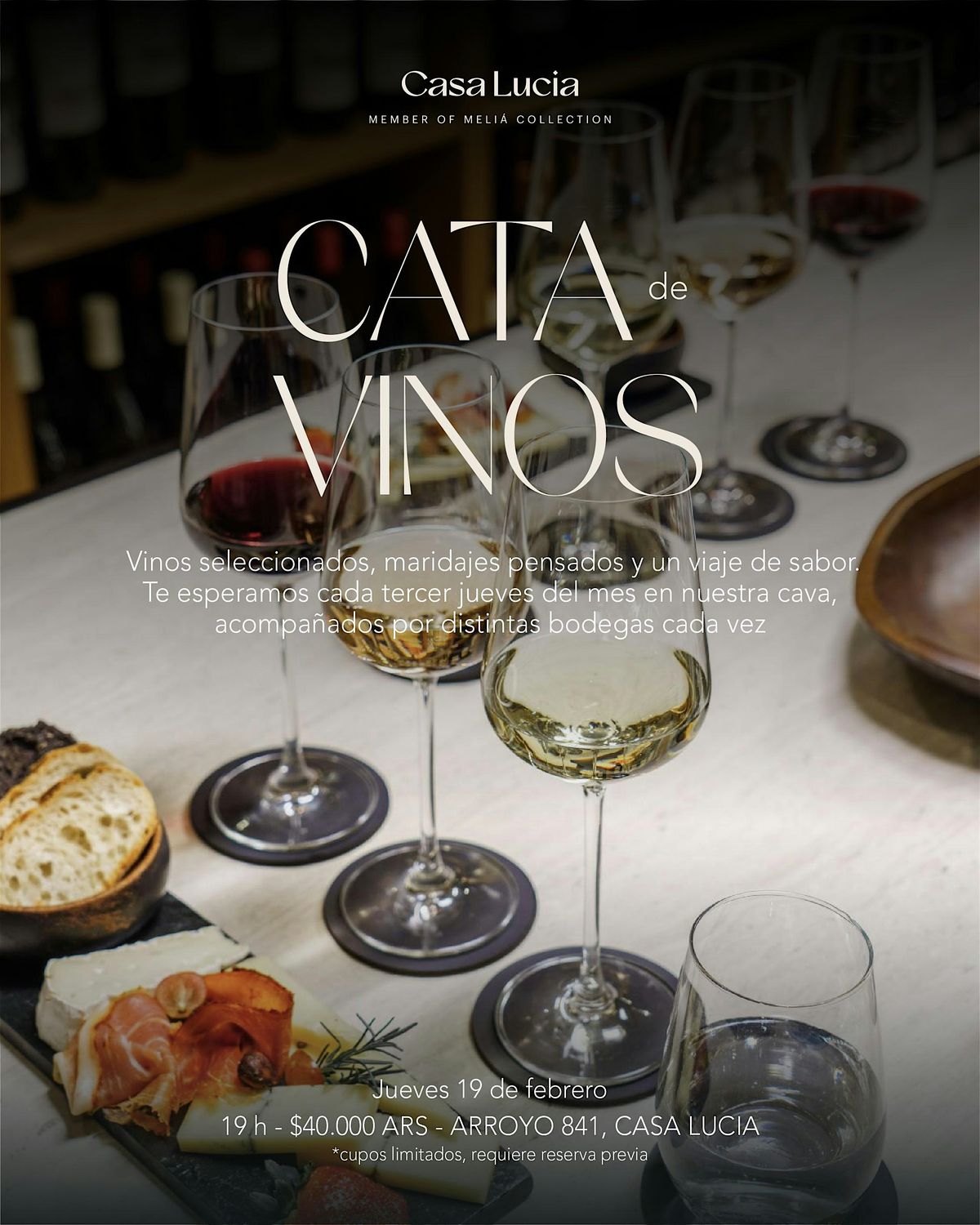 Cada tercer jueves del mes, Casa Lucía invita a descubrir el mundo del vino a través de catas guiadas junto a una bodega invitada diferente en cada edición. La experiencia incluye la degustación de tres variedades de vino, acompañadas por platitos especialmente diseñados para realzar cada maridaje. En esta ocasión, la propuesta se presenta junto a Bodega Rutini.