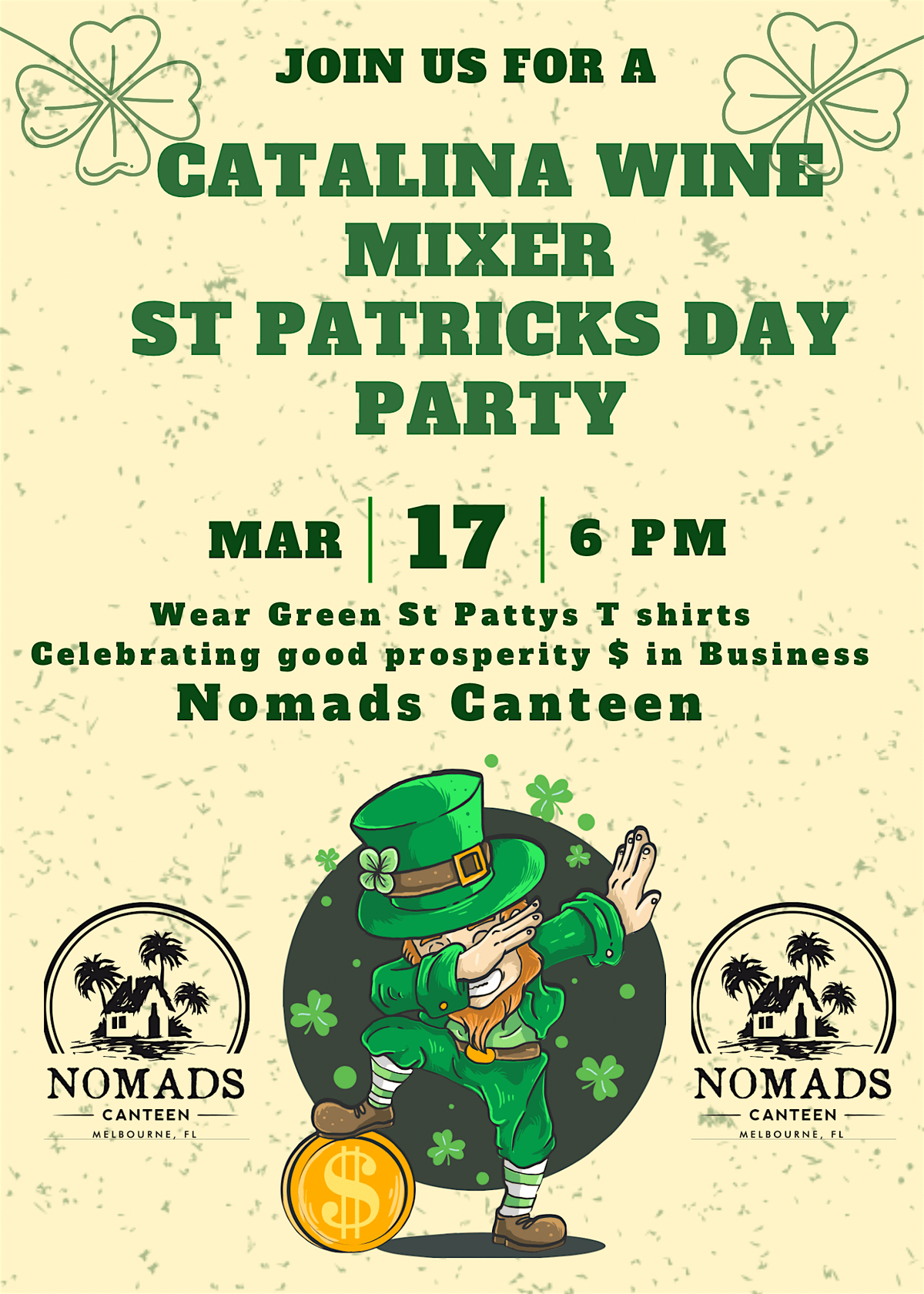 Get ready to **mix, mingle, and network** at the *Catalina Wine Mixer – St. Patrick’s Day Edition* at **Nomads**!