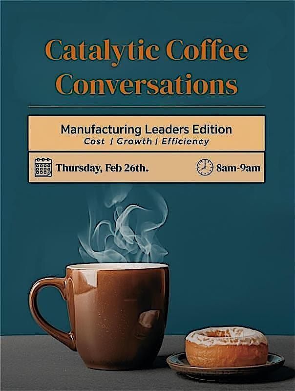 Catalytic Coffee Conversations brings together a small group of local manufacturing CEOs, owners, and operations leaders for a focused discussion around the real operational challenges and growth opportunities facing the industry today.