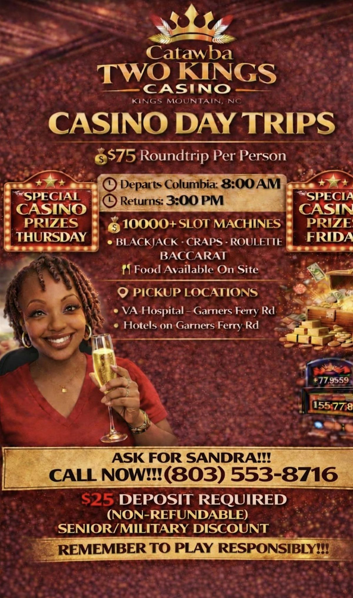 Safe and Convenient Connection from Columbia to Catawba Two Kings Casino (Kings Mountain, NC)About this Event