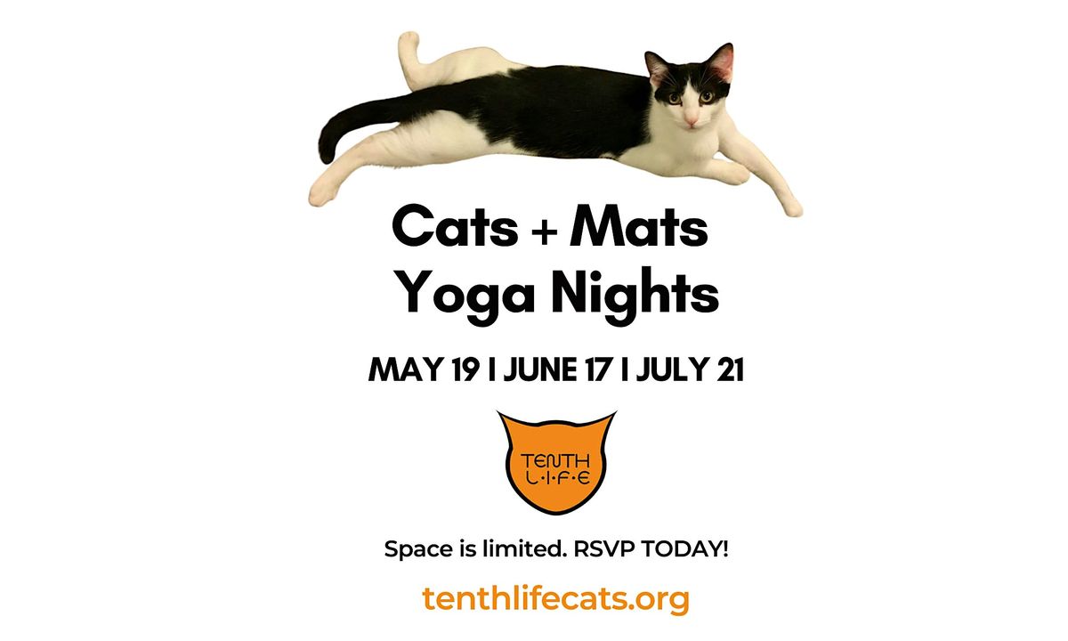 We love how our community rises to the occasion but we realize that helping others and caring a great deal can be just as exhausting as it is exhilarating and fulfilling. Cats n' Mats Yoga at Tenth Life is a friendly, non-judgmental environment where anyone at any level can join in to relax and balance your passions with your human need for self-care, down-time, laughter, friendship, and a sense of community. Wear what you want. Work at your own pace. Just breathe.