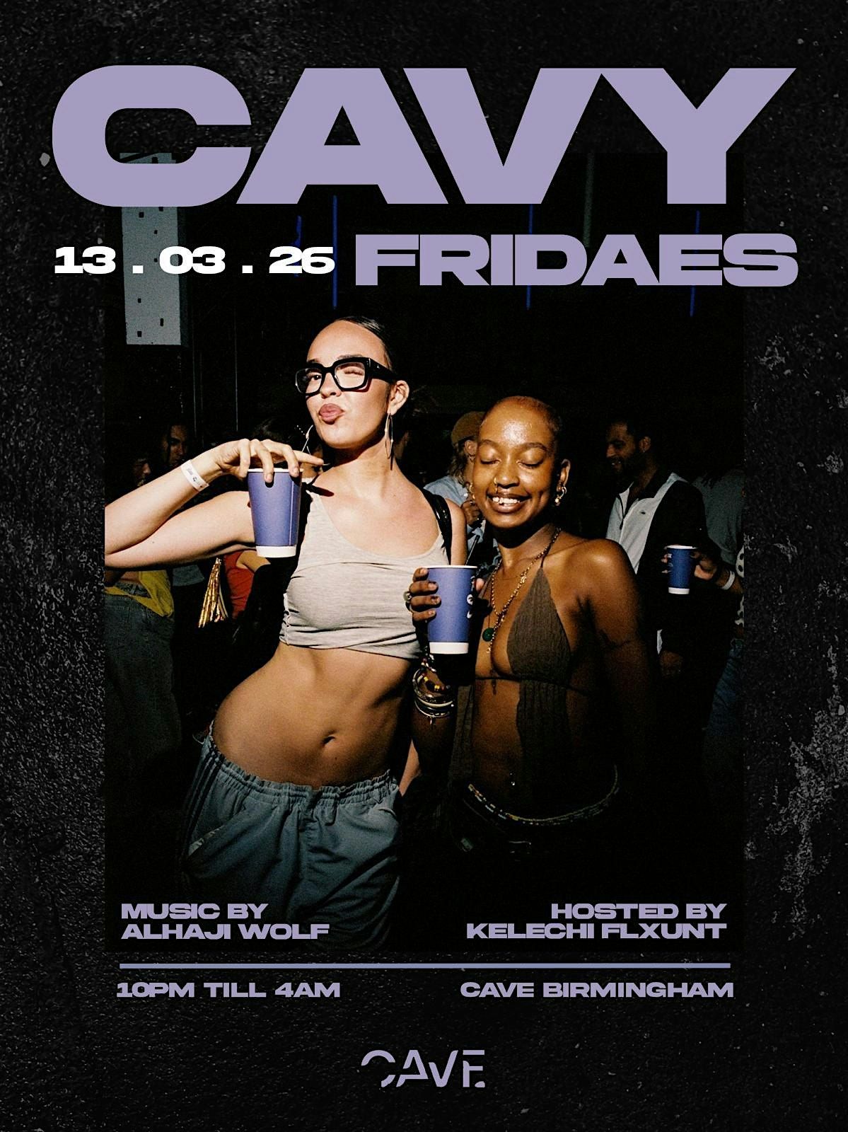 Welcome to CAVY FRIDAES happening at Cave on February 27, 2026 at 11:55 PM (Europe/London time)! 🎉 Get ready for a night filled with fun, music, and great vibes. Don't miss out on this epic event where you can dance the night away with friends and enjoy awesome beats. Mark your calendars and join us for a memorable night! See you there! 🎶🕺