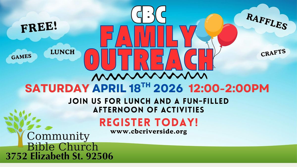 Join us at Community Bible Church Riverside for our 2nd Annual Family Outreach event.