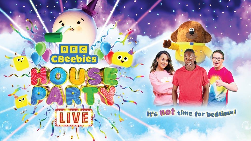 You?re all invited to the CBeebies House Party LIVE! A family fun-packed stage show with sensational songs, stupendous surprises and mega moments. Join the superstars of CBeebies ? including Dodge, Rebecca Keatley, Mister Maker, George Webster and Duggee ? as they throw an epic party just for YOU! Get ready to rave? with dancing, singing, streamers, giant jellies and bubbles galore?. and of course, a CBeebies Bedtime Story. But?IT?S NOT TIME FOR BEDTIME! IT?S TIME TO PARTY!