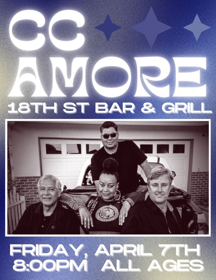 CC Amore is back to groove on our stage this Friday evening! Get out for some food, drinks with your friends here at 18th St Bar and Grill ??
