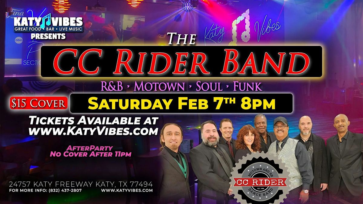 🔥Saturday, 2/7 at 8:00 PM, CC Rider Band brings live Motown, R&B, soul, and funk to Katy Vibes.🎶