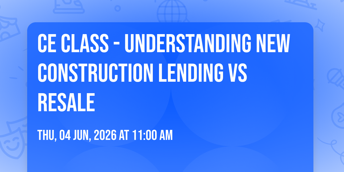 CE Class - Understanding New Construction Lending vs Resale