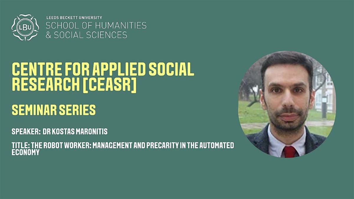 Dr Kostas Maronitis is a Senior Lecturer in Politics and International Relations. He is the author of two books: Robots and Immigrants (Bristol University Press, 2022) and Postnationalism and the Challenges to European Integration in Greece (Palgrave, 2017). He has published widely on topics including immigrant detention and human rights, protest networks and citizenship, the politics of fear and victimhood, sovereignty and global markets, and the intersections of automation and immigration. Kostas is an expert contributor to the UK Parliamentary Office for Science and Technology (POST) and his opinion pieces and essays have been featured in the New Statesman, Friedrich Ebert Institute, ETERON think tank, Re-Shaping Work, Documenta Exhibition Daybook, and Yorkshire Evening Post.