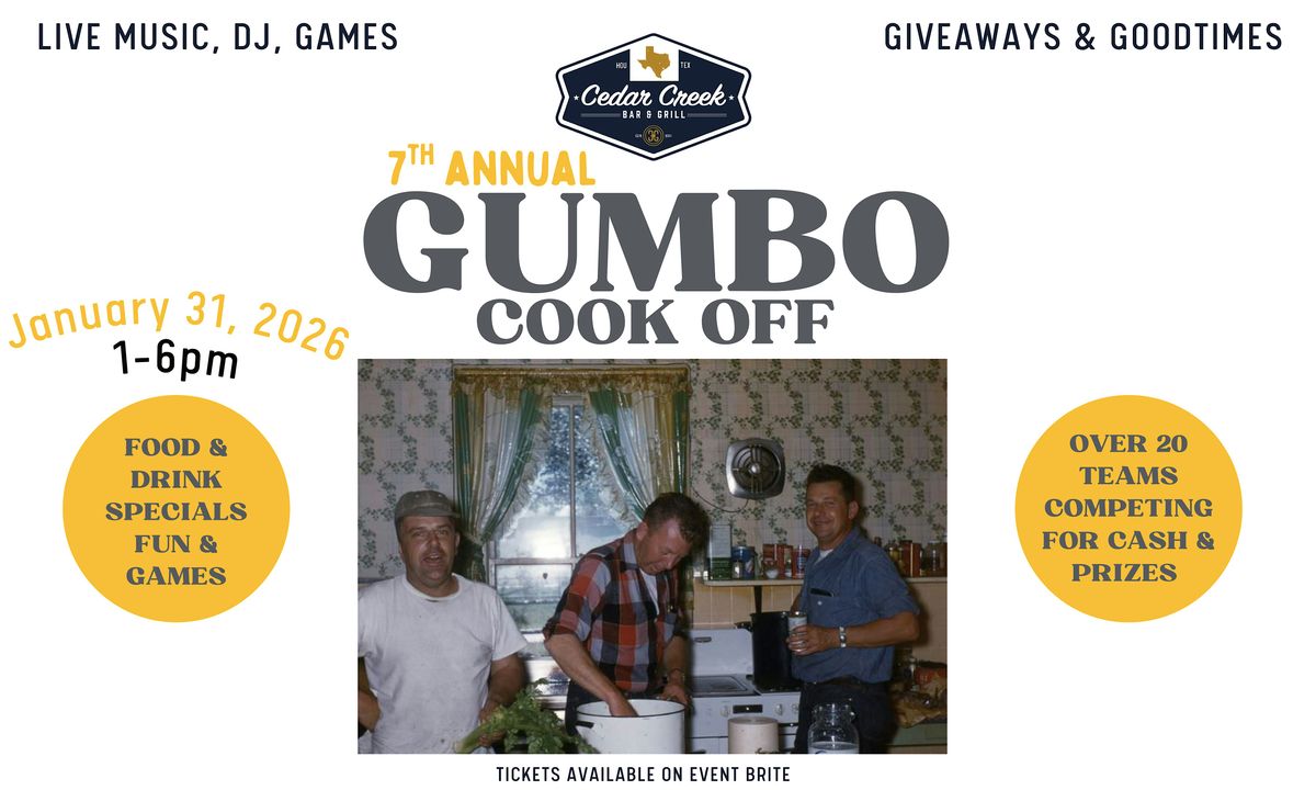 Cedar Creek's Gumbo Cook-Off is back for another year of bad-ass gumbo from your favorite gumbo crews, breweries, and gumbo aficionados.