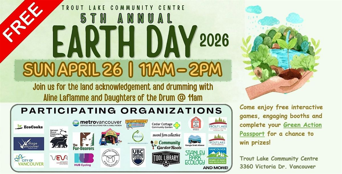 Trout Lake Community Center is hosting its 5th annual Earth Day celebration on April 26, 2026, from 11am-2pm, featuring: