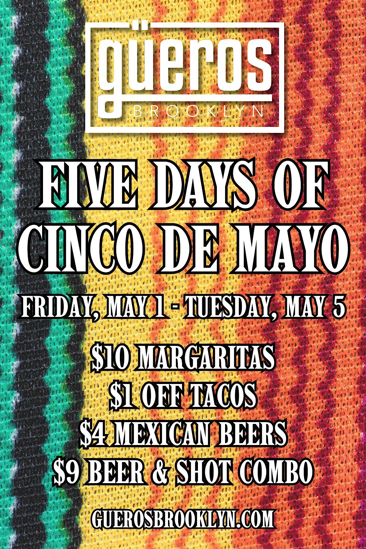 Not to be outdone, Gueros in Crown Heights is extending their beloved Happy Hour for all five days, offering the ultimate bang for your buck with $10 margaritas, $4 beers, and $1 off their signature tacos. Whether you’re craving a crispy taco and a cold brew or a sit-down enchilada feast with a round of shots, these two Brooklyn staples have created the perfect multi-day roadmap for your Cinco de Mayo festivities.