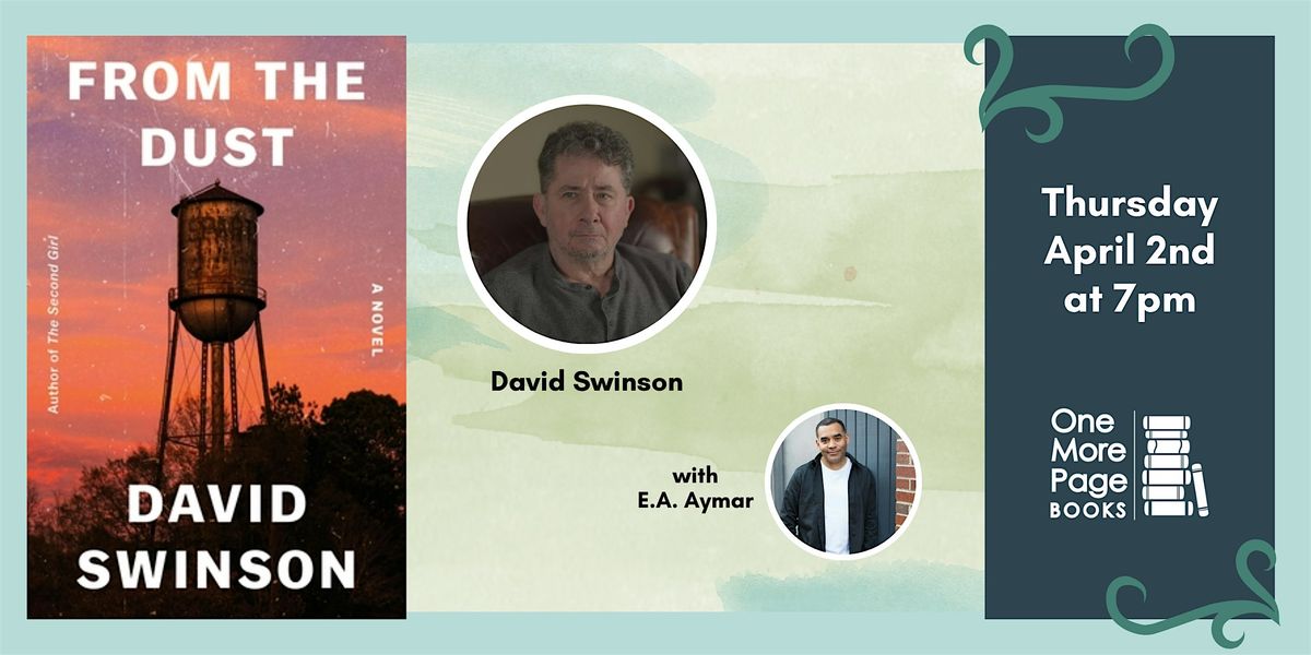 Join author David Swinson (Frank Marr Trilogy, CITY ON THE EDGE) as he discusses his newest release: FROM THE DUST with author E.A. Aymar (WHEN SHE LEFT)! Signings to take place after the discussion.