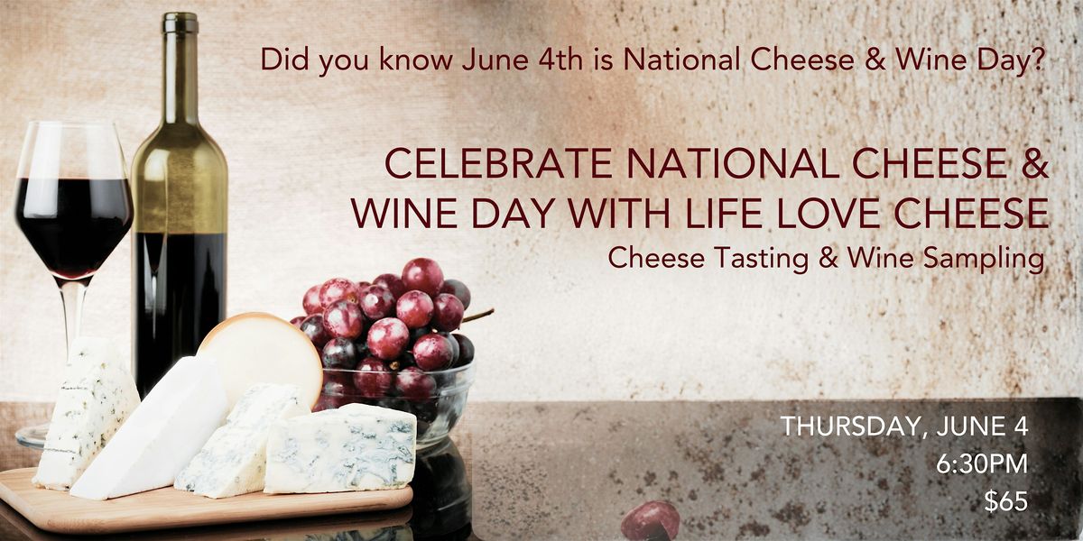 Come celebrate National Cheese & Wine Day with Life Love Cheese. It'll be a night to remember with an evening of talking cheese, eating cheese and samplign wines.