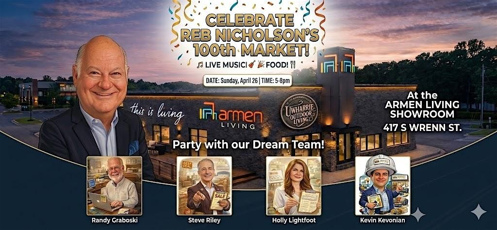 Join us for an event to celebrate National Sales Manager, Reb Nicholson, hitting his 100th High Point Market milestone anniversary. It’s going to be a fun, lively gathering full of great vibes, live music, catered delights, a full bar, and, of course, good company!